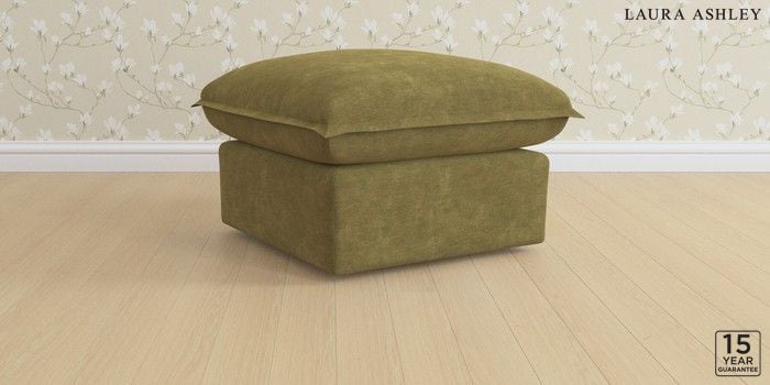 6.12.1 Buy Westerham by Laura Ashley Footstool Alwyn Velvet Olive Green Glide from the Laura Ashley online shop Click here to use our website with more accessibility support, for example screen readers