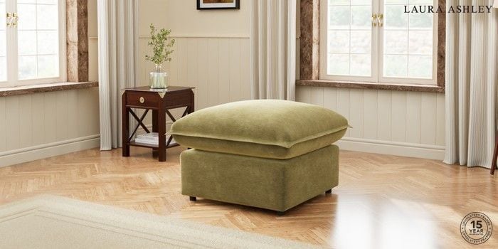 7.2.5 Buy Westerham by Laura Ashley Footstool Alwyn Velvet Olive Green Glide from the Laura Ashley online shop Click here to use our website with more accessibility support, for example screen readers