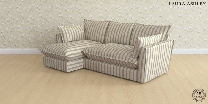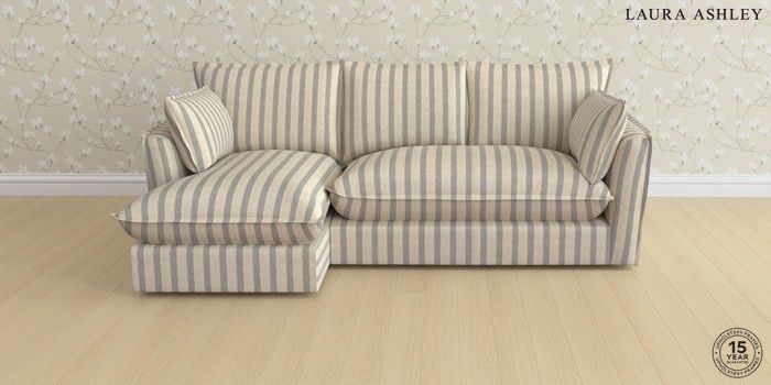 6.12.1 Buy Westerham by Laura Ashley Medium Sofa Chaise - Left Hand Kinsham Stripe Seaspray Blue Glide from the Laura Ashley online shop Click here to use our website with more accessibility support, for example screen readers