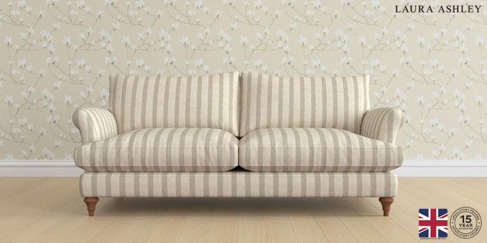 6.12.1 Buy Westley by Laura Ashley 3 Seater Sofa Kinsham Stripe Natural Mid Turned - Teak from the Laura Ashley online shop Click here to use our website with more accessibility support, for example screen readers