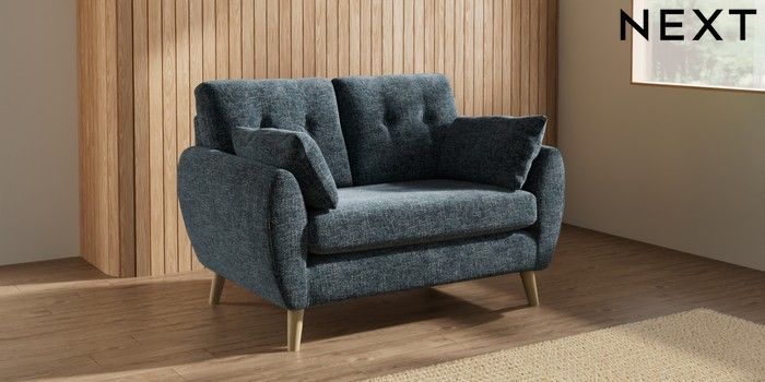 7.3.1 Buy Wilson Buttoned Back 2 Seater Small Sofa Chunky Chenille Dark Navy Blue Retro Tapered - Light from the Laura Ashley online shop