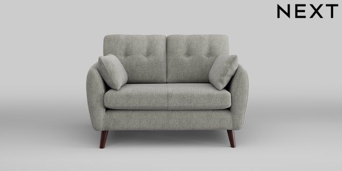 6.12.1 Buy Wilson Buttoned Back 2 Seater Small Sofa Chunky Chenille Light Grey Retro Tapered - Dark Brown from the Laura Ashley online shop Click here to use our website with more accessibility support, for example screen readers
