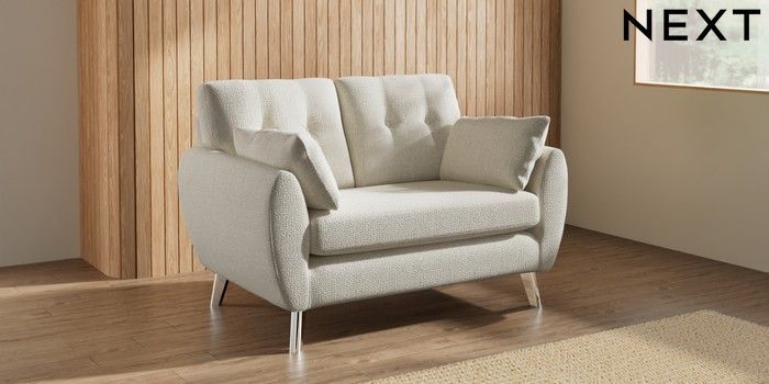 7.3.1 Buy Wilson Buttoned Back 2 Seater Small Sofa Chunky Texture Oyster Metal Tapered - Chrome from the Laura Ashley online shop Click here to use our website with more accessibility support, for example screen readers