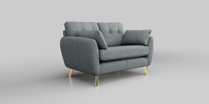 6.12.1 Buy Wilson Buttoned Back 2 Seater Small Sofa Chunky Weave Mid Blue Metal Tapered - Gold from the Laura Ashley online shop Click here to use our website with more accessibility support, for example screen readers