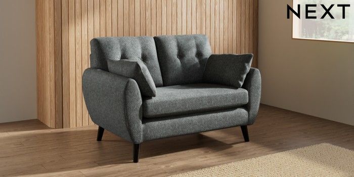 7.3.1 Buy Wilson Buttoned Back 2 Seater Small Sofa Cotswold Chenille Dark Grey Retro Tapered - Dark from the Laura Ashley online shop