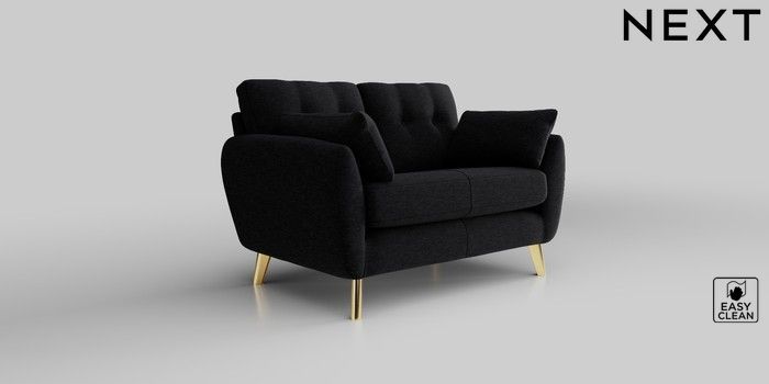 6.12.13 Buy Wilson Buttoned Back 2 Seater Small Sofa Fine Chenille Easy Clean Black Metal Tapered - Gold from the Laura Ashley online shop Click here to use our website with more accessibility support, for example screen readers