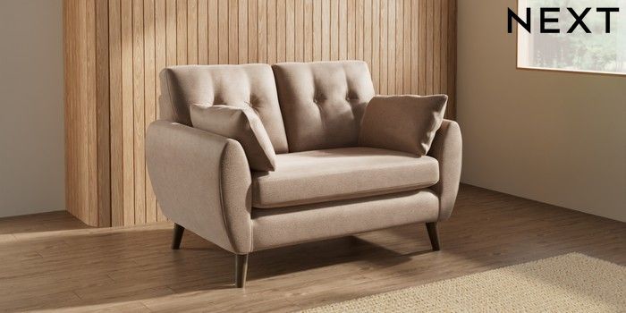 7.3.1 Buy Wilson Buttoned Back 2 Seater Small Sofa Luxe Chenille Mid Natural Retro Tapered - Mid from the Laura Ashley online shop