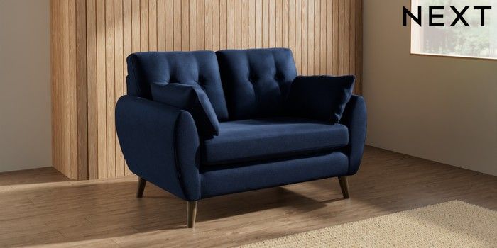 7.3.1 Buy Wilson Buttoned Back 2 Seater Small Sofa Luxe Chenille Navy Blue Retro Tapered - Mid from the Laura Ashley online shop