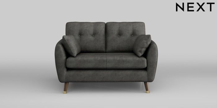 6.12.1 Buy Wilson Buttoned Back 2 Seater Small Sofa Monza Faux Leather Easy Clean Dark Grey Low Retro Tapered Metal Cap - Mid from the Laura Ashley online shop Click here to use our website with more accessibility support, for example screen readers