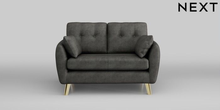 6.12.1 Buy Wilson Buttoned Back 2 Seater Small Sofa Monza Faux Leather Easy Clean Dark Grey Metal Tapered - Gold from the Laura Ashley online shop Click here to use our website with more accessibility support, for example screen readers