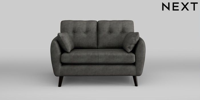 6.12.1 Buy Wilson Buttoned Back 2 Seater Small Sofa Monza Faux Leather Easy Clean Dark Grey Retro Tapered - Dark from the Laura Ashley online shop Click here to use our website with more accessibility support, for example screen readers
