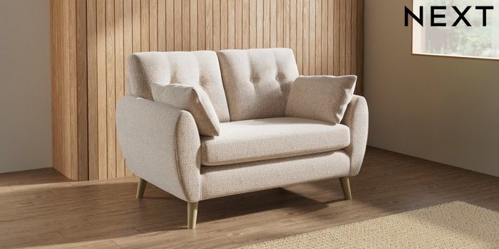 7.3.1 Buy Wilson Buttoned Back 2 Seater Small Sofa Multi Weave Mid Natural Retro Tapered - Light from the Laura Ashley online shop
