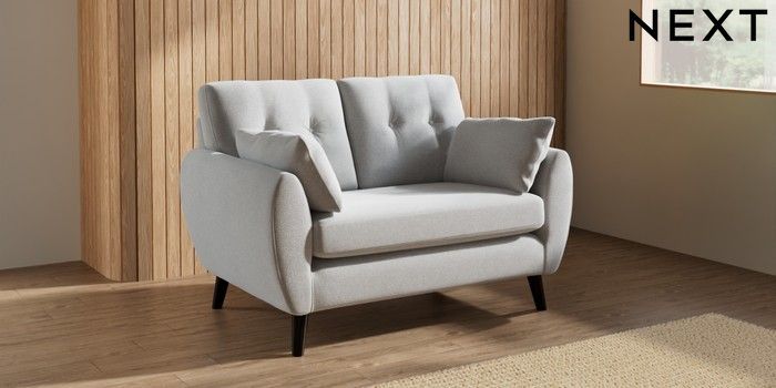 7.3.1 Buy Wilson Buttoned Back 2 Seater Small Sofa Natural Mix Light Grey Retro Tapered - Dark from the Laura Ashley online shop