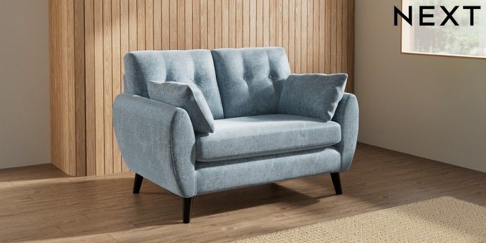 7.3.1 Buy Wilson Buttoned Back 2 Seater Small Sofa Plush Chenille Light Blue Retro Tapered - Dark from the Laura Ashley online shop