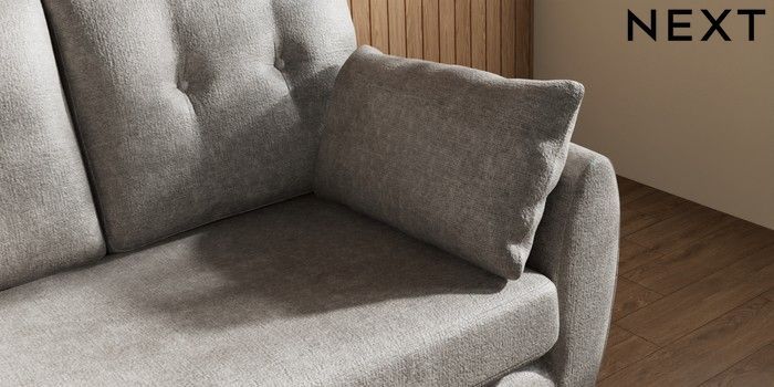 7.3.1 Buy Wilson Buttoned Back 2 Seater Small Sofa Plush Chenille Light Grey Metal Tapered - Gold from the Laura Ashley online shop