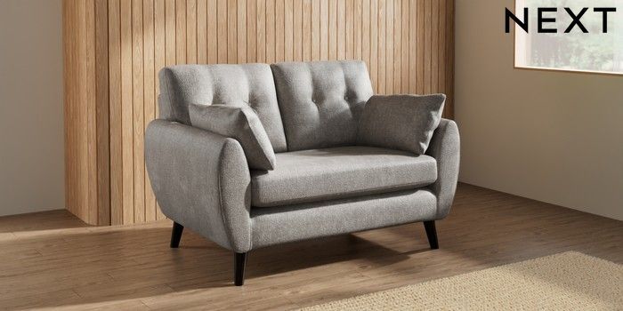 7.3.1 Buy Wilson Buttoned Back 2 Seater Small Sofa Plush Chenille Light Grey Retro Tapered - Dark from the Laura Ashley online shop