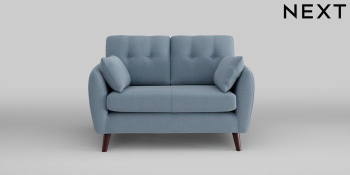 6.12.1 Buy Wilson Buttoned Back 2 Seater Small Sofa Relaxed Linen Look Mid Blue Retro Tapered - Dark Brown from the Laura Ashley online shop Click here to use our website with more accessibility support, for example screen readers