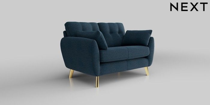 6.12.1 Buy Wilson Buttoned Back 2 Seater Small Sofa Ripple Chenille Dark Blue Metal Tapered - Gold from the Laura Ashley online shop Click here to use our website with more accessibility support, for example screen readers