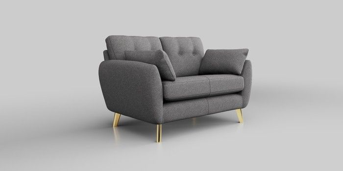 6.12.1 Buy Wilson Buttoned Back 2 Seater Small Sofa Studio Chenille Mid Grey Metal Tapered - Gold from the Laura Ashley online shop Click here to use our website with more accessibility support, for example screen readers