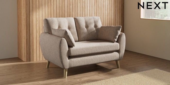 7.3.1 Buy Wilson Buttoned Back 2 Seater Small Sofa Tweedy Chenille Mid Natural Retro Tapered - Light from the Laura Ashley online shop Click here to use our website with more accessibility support, for example screen readers