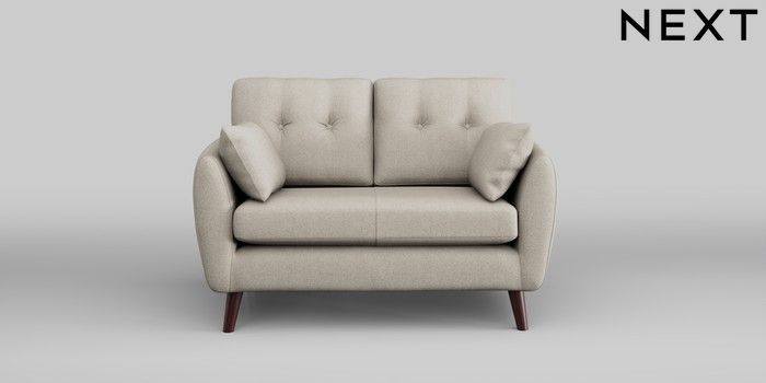 6.12.1 Buy Wilson Buttoned Back 2 Seater Small Sofa Tweedy Chenille Oyster Retro Tapered - Dark Brown from the Laura Ashley online shop Click here to use our website with more accessibility support, for example screen readers