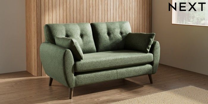 7.3.1 Buy Wilson Buttoned Back 2 Seater Sofa Boucle Chenille Dark Moss Green Retro Tapered - Mid from the Laura Ashley online shop Click here to use our website with more accessibility support, for example screen readers