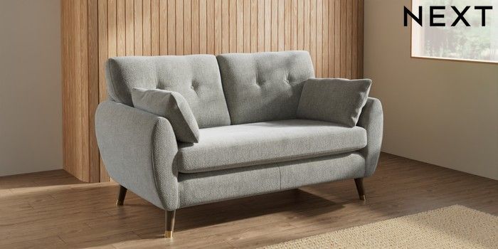 7.3.1 Buy Wilson Buttoned Back 2 Seater Sofa Chunky Chenille Light Grey Low Retro Tapered Metal Cap - Mid from the Laura Ashley online shop Click here to use our website with more accessibility support, for example screen readers