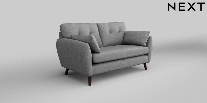 6.12.1 Buy Wilson Buttoned Back 2 Seater Sofa Chunky Weave Mid Grey Retro Tapered - Dark Brown from the Laura Ashley online shop Click here to use our website with more accessibility support, for example screen readers