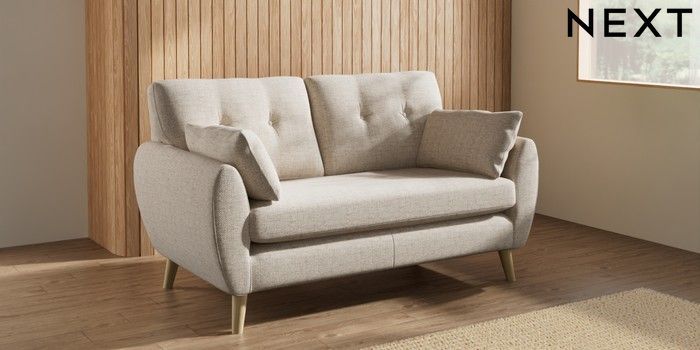 7.3.1 Buy Wilson Buttoned Back 2 Seater Sofa Chunky Weave Mid Natural Retro Tapered - Light from the Laura Ashley online shop