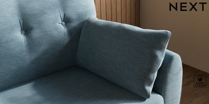 7.3.1 Buy Wilson Buttoned Back 2 Seater Sofa Fine Chenille Easy Clean Mid Blue Retro Tapered - Light from the Laura Ashley online shop
