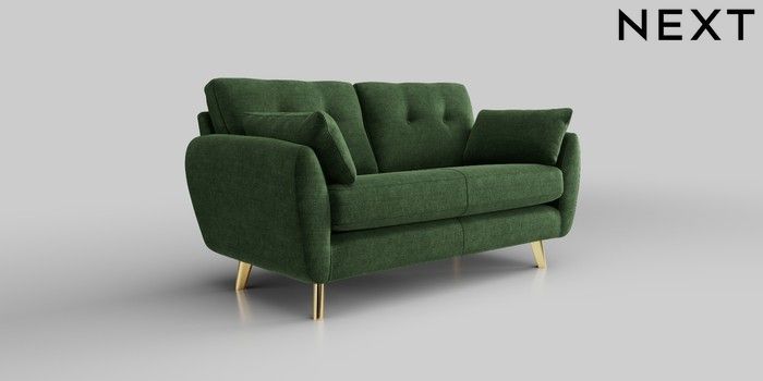 6.12.1 Buy Wilson Buttoned Back 2 Seater Sofa Luxe Chenille Dark Green Metal Tapered - Gold from the Laura Ashley online shop Click here to use our website with more accessibility support, for example screen readers
