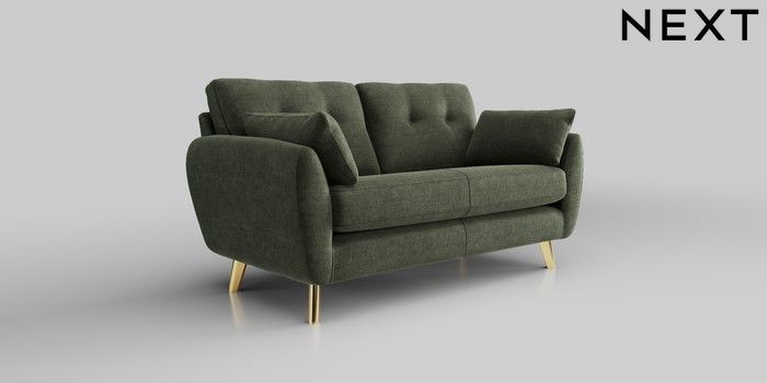 6.12.1 Buy Wilson Buttoned Back 2 Seater Sofa Luxe Chenille Mid Green Metal Tapered - Gold from the Laura Ashley online shop Click here to use our website with more accessibility support, for example screen readers