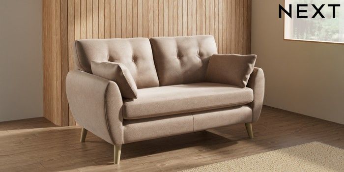 7.3.1 Buy Wilson Buttoned Back 2 Seater Sofa Luxe Chenille Mid Natural Retro Tapered - Light from the Laura Ashley online shop