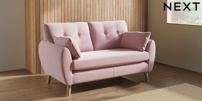 7.3.1 Buy Wilson Buttoned Back 2 Seater Sofa Natural Mix Light Rose Pink Retro Tapered - Light from the Laura Ashley online shop