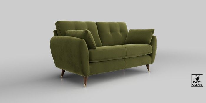 6.12.1 Buy Wilson Buttoned Back 2 Seater Sofa Plush Velvet Easy Clean Mid Olive Green Low Retro Tapered Metal Cap - Mid from the Laura Ashley online shop Click here to use our website with more accessibility support, for example screen readers