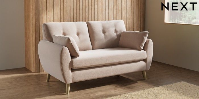 7.3.1 Buy Wilson Buttoned Back 2 Seater Sofa Relaxed Linen Look Mid Natural Retro Tapered - Light from the Laura Ashley online shop