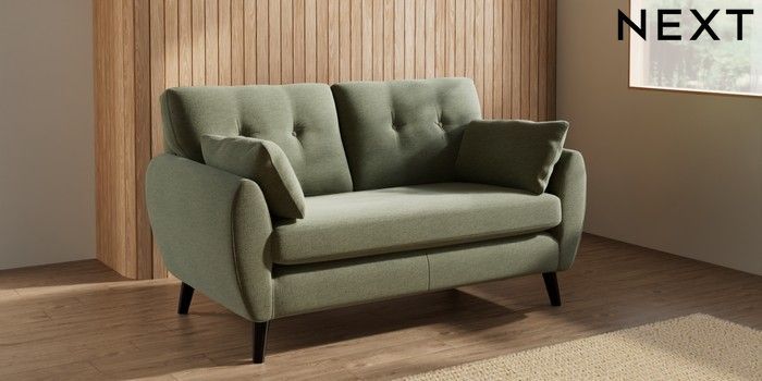 7.3.1 Buy Wilson Buttoned Back 2 Seater Sofa Ripple Chenille Mid Moss Green Retro Tapered - Dark from the Laura Ashley online shop Click here to use our website with more accessibility support, for example screen readers