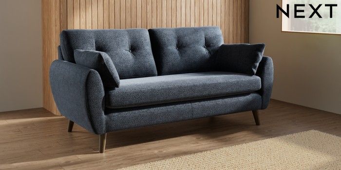7.3.1 Buy Wilson Buttoned Back 3 Seater Small Sofa Boucle Chenille Dark Slate Blue Retro Tapered - Mid from the Laura Ashley online shop Click here to use our website with more accessibility support, for example screen readers