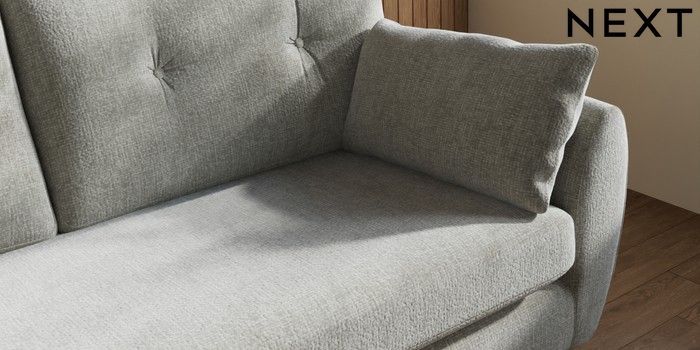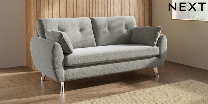 7.3.1 Buy Wilson Buttoned Back 3 Seater Small Sofa Chunky Chenille Light Grey Metal Tapered - Chrome from the Laura Ashley online shop