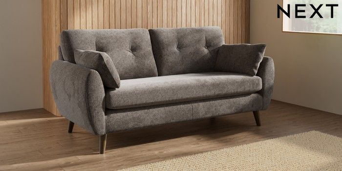 7.3.1 Buy Wilson Buttoned Back 3 Seater Small Sofa Chunky Chenille Mink Brown Retro Tapered - Mid from the Laura Ashley online shop Click here to use our website with more accessibility support, for example screen readers