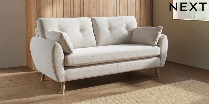 7.3.1 Buy Wilson Buttoned Back 3 Seater Small Sofa Chunky Marl Oyster Retro Tapered - Light from the Laura Ashley online shop Click here to use our website with more accessibility support, for example screen readers