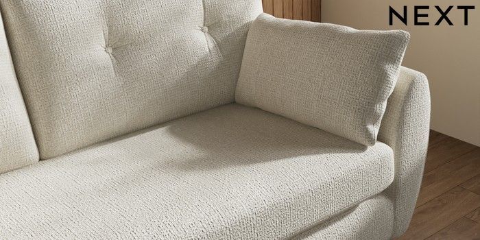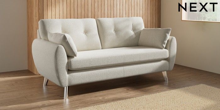 7.3.1 Buy Wilson Buttoned Back 3 Seater Small Sofa Chunky Texture Oyster Metal Tapered - Chrome from the Laura Ashley online shop Click here to use our website with more accessibility support, for example screen readers