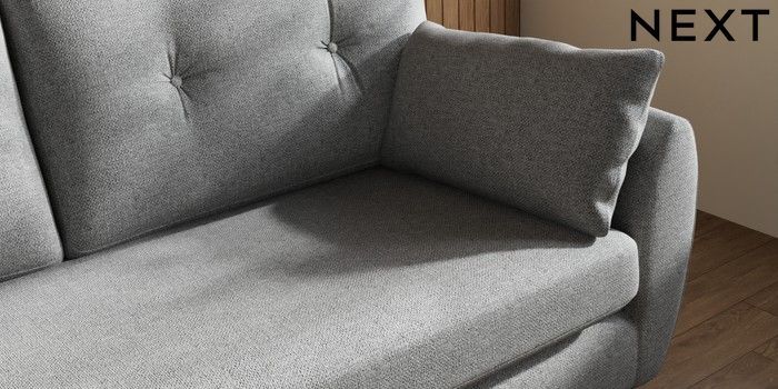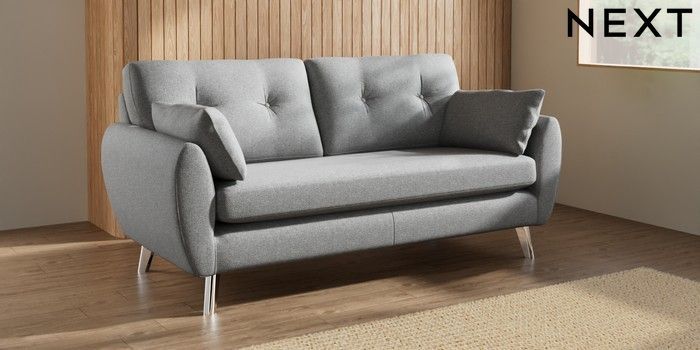 7.3.1 Buy Wilson Buttoned Back 3 Seater Small Sofa Chunky Weave Mid Grey Metal Tapered - Chrome from the Laura Ashley online shop