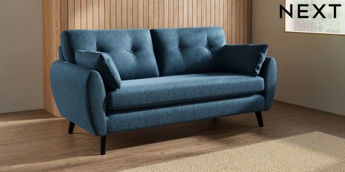 7.3.1 Buy Wilson Buttoned Back 3 Seater Small Sofa Cotswold Chenille Dark Blue Retro Tapered - Dark from the Laura Ashley online shop Click here to use our website with more accessibility support, for example screen readers