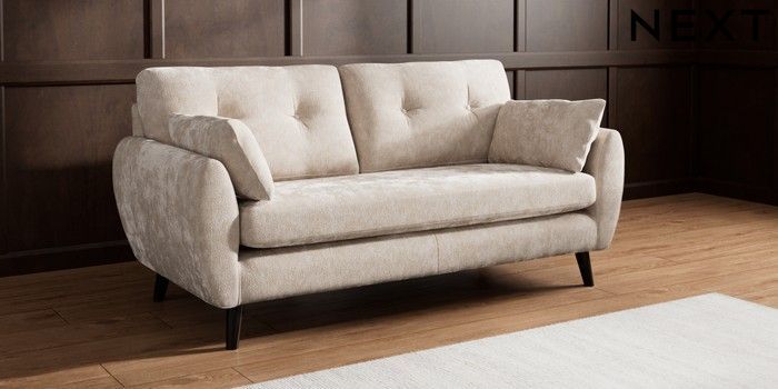 7.3.1 Buy Wilson Buttoned Back 3 Seater Small Sofa Distressed Velour Mid Natural Retro Tapered - Dark from the Laura Ashley online shop