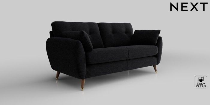 6.12.1 Buy Wilson Buttoned Back 3 Seater Small Sofa Fine Chenille Easy Clean Black Low Retro Tapered Metal Cap - Mid from the Laura Ashley online shop Click here to use our website with more accessibility support, for example screen readers
