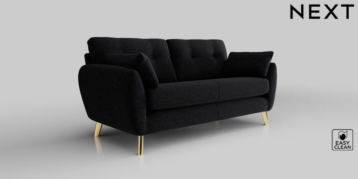 6.12.1 Buy Wilson Buttoned Back 3 Seater Small Sofa Fine Chenille Easy Clean Black Metal Tapered - Gold from the Laura Ashley online shop Click here to use our website with more accessibility support, for example screen readers