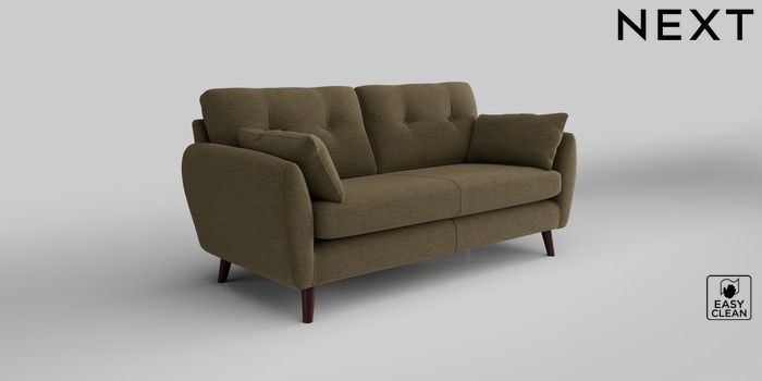 6.12.1 Buy Wilson Buttoned Back 3 Seater Small Sofa Fine Chenille Easy Clean Dark Moss Green Retro Tapered - Dark Brown from the Laura Ashley online shop Click here to use our website with more accessibility support, for example screen readers