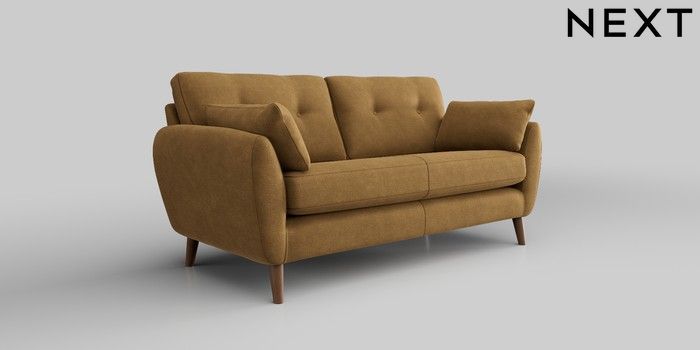 6.12.1 Buy Wilson Buttoned Back 3 Seater Small Sofa Luxe Chenille Honey Yellow Retro Tapered - Mid from the Laura Ashley online shop Click here to use our website with more accessibility support, for example screen readers