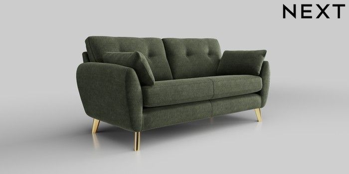 6.12.1 Buy Wilson Buttoned Back 3 Seater Small Sofa Luxe Chenille Mid Green Metal Tapered - Gold from the Laura Ashley online shop Click here to use our website with more accessibility support, for example screen readers